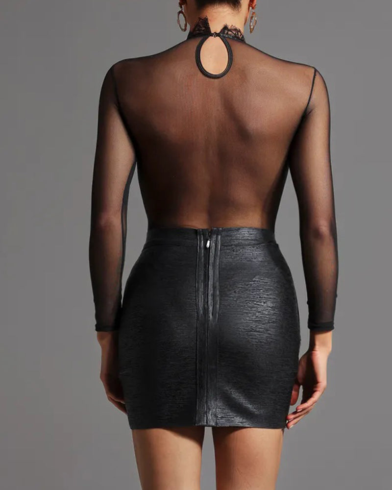 Sexy Lace See-through Mesh Long-sleeved Bodysuit