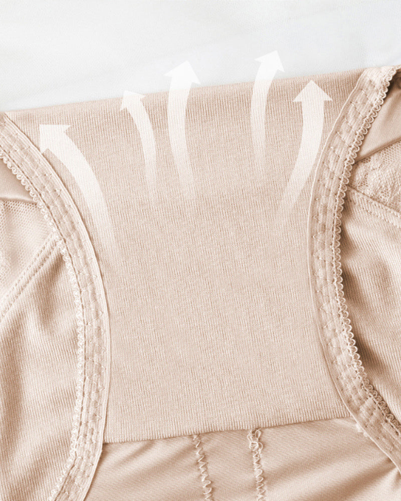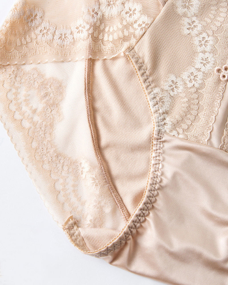 Plus Size Lace Sheer Mesh Seamless High-waisted Panties