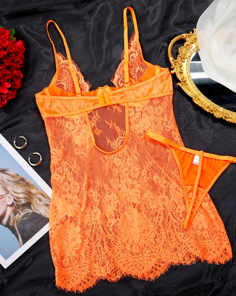 Sexy Lace Sheer Push-up Camisole Nightgown and Thong Set