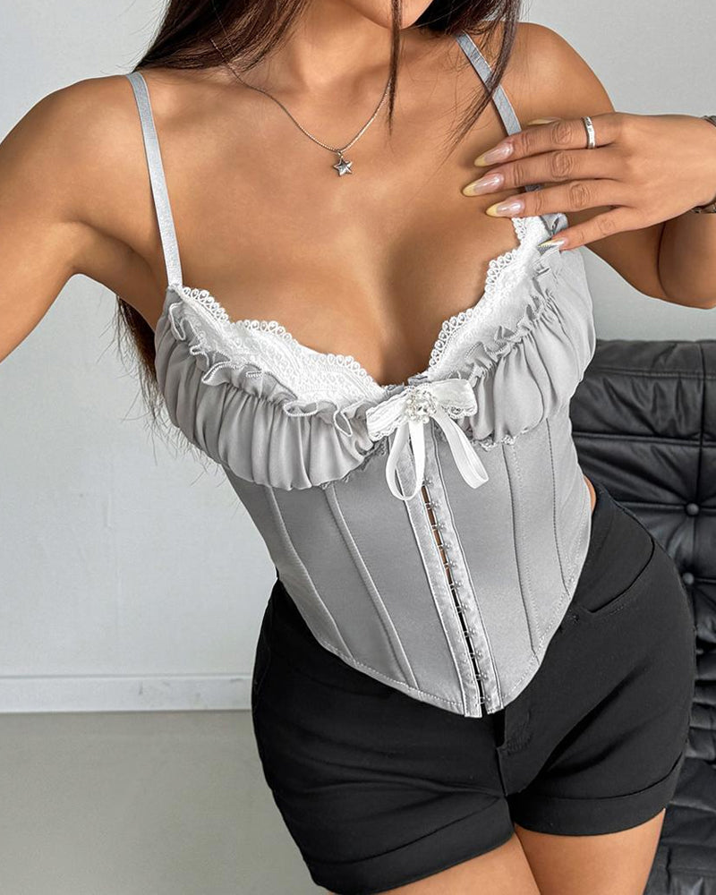 Sexy Sheer Mesh Lace Patchwork Boning Spaghetti Straps Corset Top