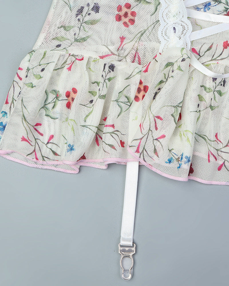 Floral Lace Stitching Stretch Mesh Sexy Pajamas and Stockings Set